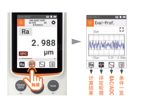 配備觸摸屏,升級了用戶界面。使用指尖即可直觀地進行畫面切換、變更設(shè)定等操作。除了觸摸操作外,還支持輕彈操作和滑動操作,新手都可輕松進行測量。此外,還可以通過長按PAGE鍵來禁用觸摸屏操作,
