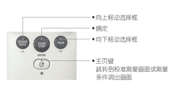 即使由于戴著手套觸摸屏沒有反應(yīng),也可以使用實體按鍵進行操作。增加了主頁鍵,可以一鍵切換到主頁畫面,顯示日常菜單,調(diào)出校準(zhǔn)測量和測量條件。
