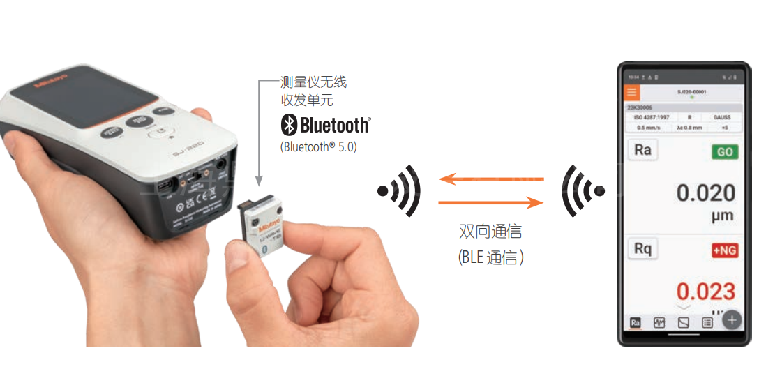 終端側(cè)除了可接收測量結(jié)果外,還可發(fā)送測量條件設(shè)定和測量開始信息,無需電纜即可進行測量作業(yè)。